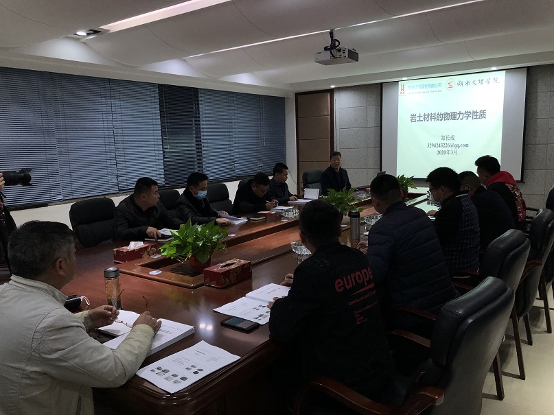 2020年4月,由于疫情原因?qū)е率袌龃蟓h(huán)境波動(dòng)較大,總經(jīng)理陳吉果審時(shí)度勢,積極帶領(lǐng)定海銷售精英們開拓市場,服務(wù)客戶。為了提升專業(yè)水平,站穩(wěn)市場腳跟,公司請(qǐng)來了產(chǎn)學(xué)研合作院校湖南文理學(xué)院土木工程系鄭長成院長、楊光博士為員工進(jìn)行專業(yè)知識(shí)學(xué)習(xí)。