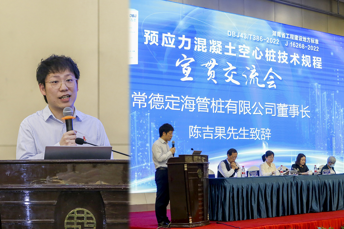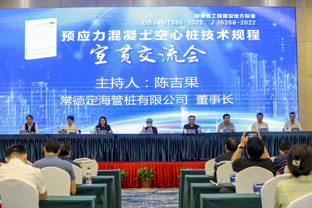 2023年4月20日上午8:30,由常德市勘察設(shè)計協(xié)會主辦,湖南文理學(xué)院土木建筑工程學(xué)院、湖南省混凝土與水泥制品協(xié)會預(yù)制樁與結(jié)構(gòu)件分會協(xié)辦,常德定海管樁有限公司承辦的湖南省《預(yù)應(yīng)力混凝土空心樁技術(shù)規(guī)程》(下稱本規(guī)程)宣貫交流會在常德柳葉湖共和大酒店共和廳開幕。