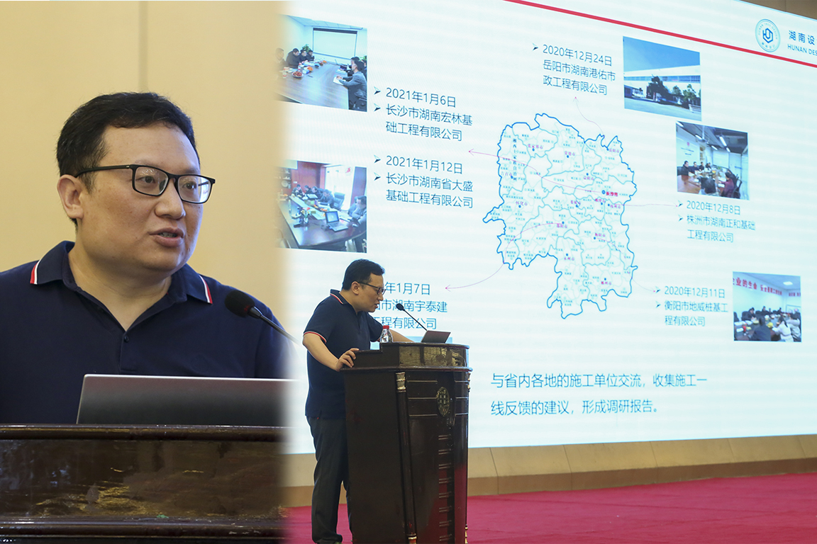 本次會議核心宣貫環(huán)節(jié),由本規(guī)程主編成員湖南省建筑設(shè)計院集團(tuán)有限公司副總工程師陳宇宣講,本規(guī)程共有15家單位參與,主要編寫和審查人員46人,內(nèi)容共6章、11個附錄、218項條文,本規(guī)程重點內(nèi)容(應(yīng)用范圍)--適用于湖南省建筑工程中預(yù)應(yīng)力混凝土空心樁的勘察、設(shè)計、施工、質(zhì)量檢測與驗收。交通、水利、市政等領(lǐng)域采用預(yù)應(yīng)力混凝土空心樁時可參照使用。